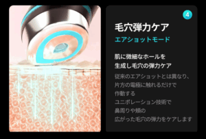 エアショットモードは、微細な電気刺激を利用して毛穴の奥に詰まった皮脂や汚れを浮かび上がらせます。