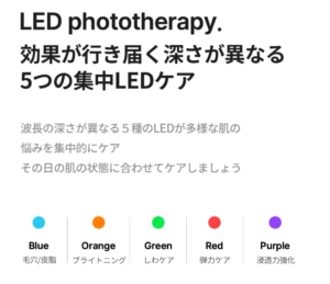 オレンジLED:くすみを和らげ、明るく透明感のある肌に導く