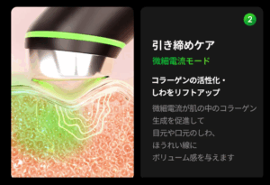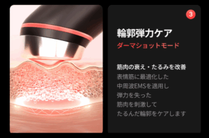 ブースタープロのMCモードは、微細電流(マイクロカレント)を使って表情筋を優しく刺激します。