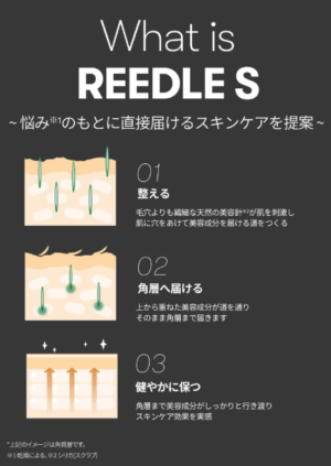 リードルショットは、天然由来のマイクロニードル(極小針)を配合した美容液です。肌表面に微細な刺激を与えることで、角質層までの浸透をサポートし、ハリやキメを整えることを目的としています。