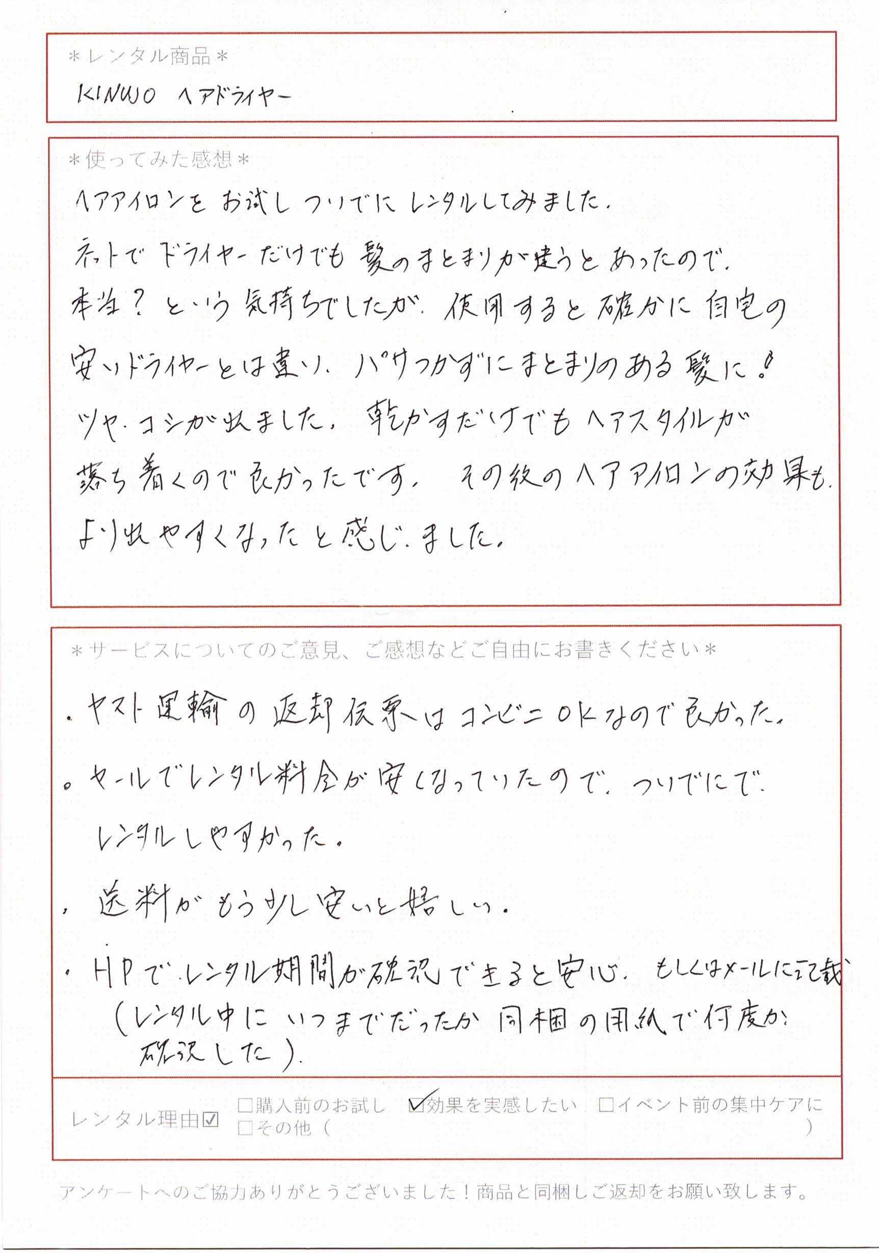 KINUJOヘアドライヤー 14泊15日(15日間)