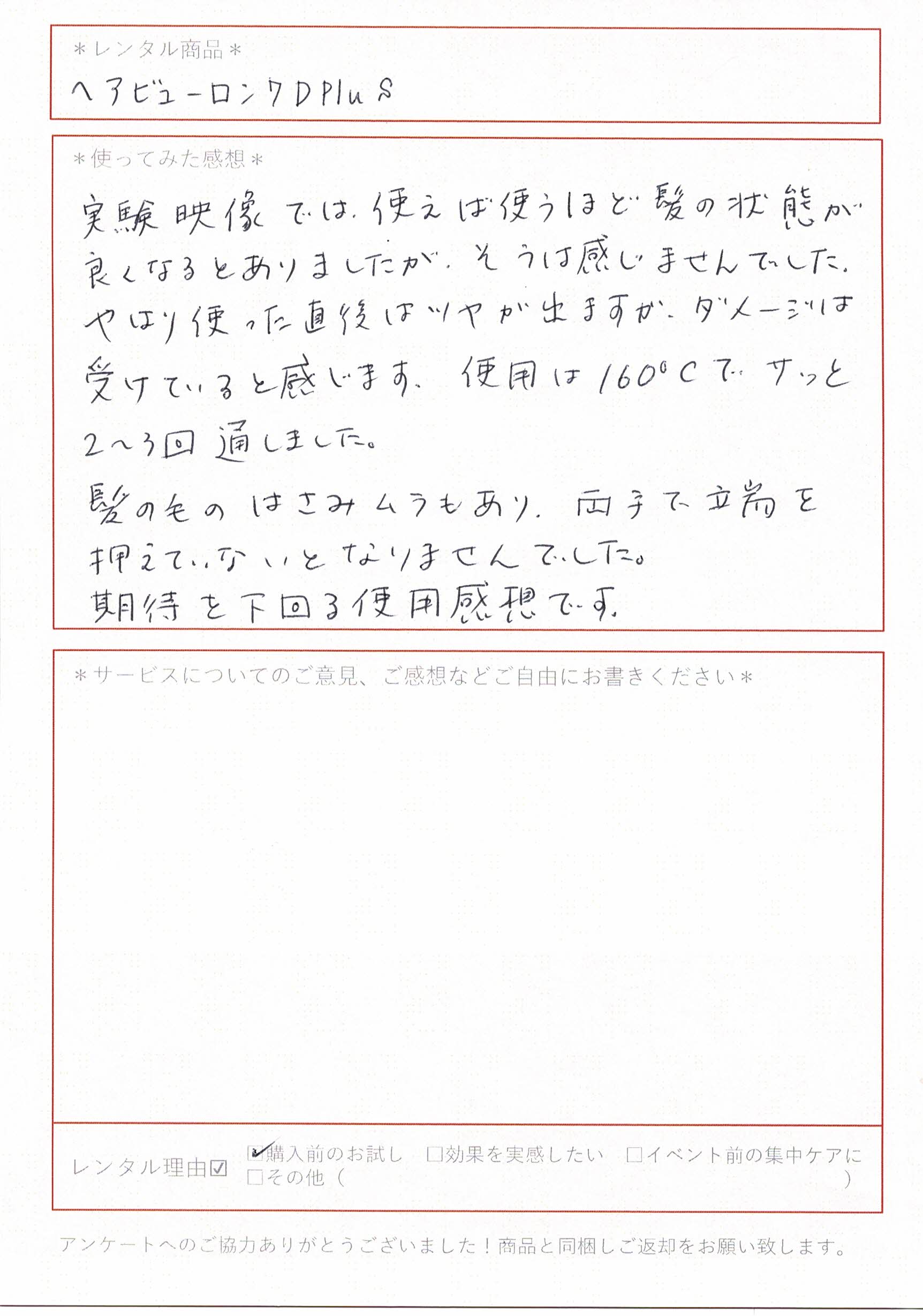 実験映像では使えば使うほど髪の状態が良くなるとありましたが、そうは感じませんでした。